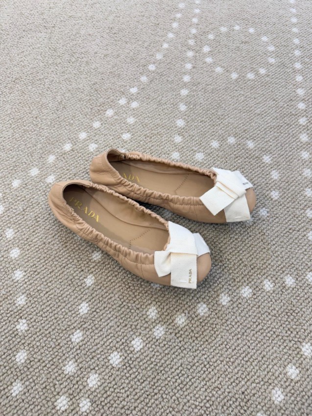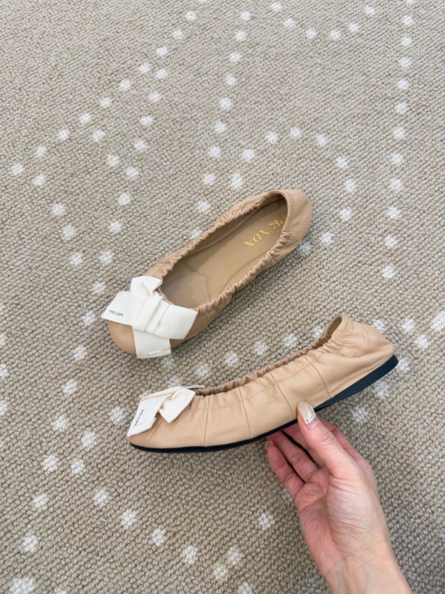 プラダ スーパーコピー バレエシューズは、フロントにあしらわれた大きめのリボンが印象的で、女性らしい柔らかな雰囲気を演出します。しなやかな素材を使用し、履き口はギャザー仕様で足にしっかりフィットしながらも締め付け感が少なく快適な履き心地を実現。フラットソール設計により長時間の歩行でも疲れにくく、デイリー使いに最適です。上品なベージュカラーはどんなコーディネートにも合わせやすく、カジュアルからきれいめスタイルまで幅広く活躍。細部まで丁寧に仕上げられた上質感モデルとして、日常に取り入れやすい一足です。