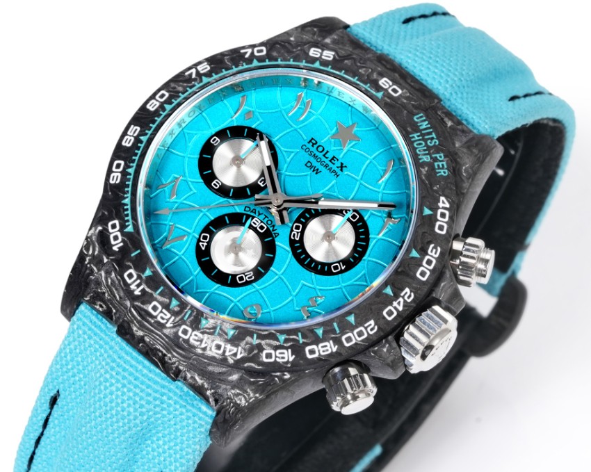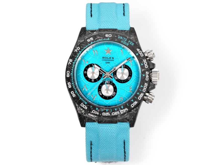 高再現度で仕上げた本モデルは、細部のクオリティにこだわった一着です。ロレックスの名作デイトナを忠実に再現したコピー仕様で、鮮やかなターコイズブルーの文字盤とブラックカーボンケースのコントラストが目を惹きます。ナイロンストラップは軽量で肌馴染みも良く、長時間の着用にも快適。2025新作として登場した本モデルは、高級感仕上げの精密ディテールと実用性を両立。ユーザーからは「デザイン・装着感ともに想像以上」と高評価多数。安心の日本倉庫より確実にお届けいたします。