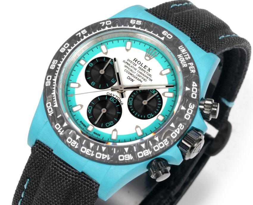 高い再現度で仕上げられた本モデルは、細部のディテールにまでこだわり抜いた逸品です。ロレックスの名作デイトナをベースに再構築したスーパーコピー仕様で、ターコイズブルーのケースとホワイトダイヤルの組み合わせが清涼感と高級感を兼ね備えています。ブラックナイロンストラップは軽量でフィット感が良く、長時間の着用でも快適。2025年新作として登場した本モデルは、「写真以上の質感」と口コミでも高評価を獲得。秘密厳守配送および日本倉庫からの迅速発送で、安心してお求めいただける高品質モデルです。