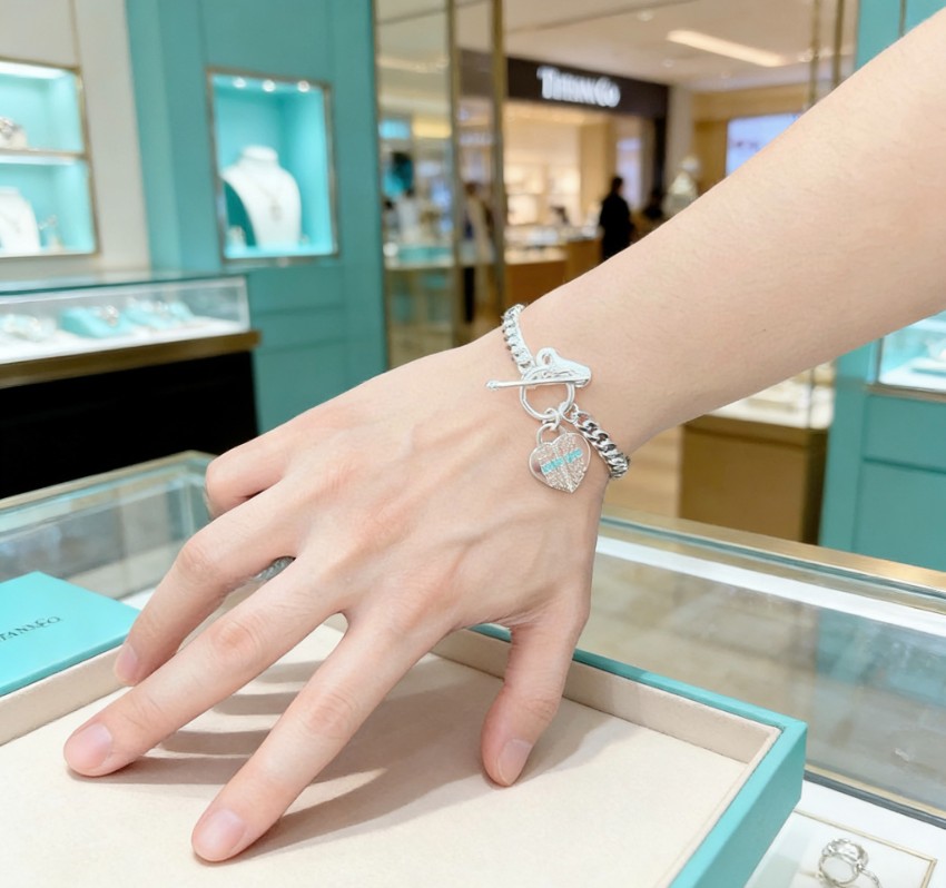 ティファニーらしい洗練されたデザインを表現した格安トグルブレスレットは、存在感あるチェーンと特徴的なトグル留め具が魅力のアイテムです。ハートタグには繊細な刻印が施され、細部まで丁寧に仕上げられた精密ディテールが上質感を引き立てます。しっかりとしたチェーン構造により手首に安定してフィットし、着脱もスムーズで日常使いに最適。シンプルながらも存在感があり、カジュアルからきれいめスタイルまで幅広く対応します。追跡可能な配送対応で安心して購入できる、実用性とデザイン性を兼ね備えたアクセサリーです。