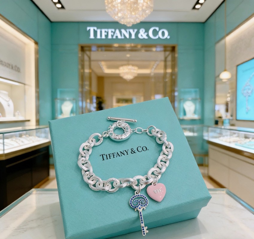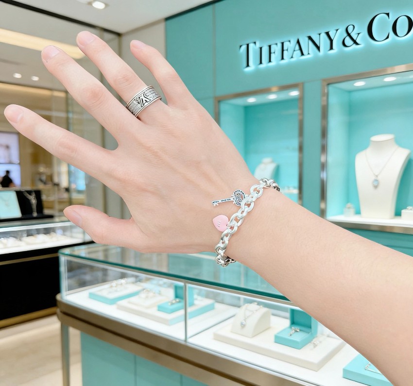 ティファニーの象徴的なデザイン要素を取り入れたハイブランド仕様のチェーンブレスレットは、存在感とエレガンスを兼ね備えたアイテムです。しっかりとしたボリュームのあるチェーンに、華やかなキーモチーフと柔らかな印象のハートチャームを組み合わせることで、手元に上品なアクセントを与えます。細部まで丁寧に仕上げられた上質感と滑らかな質感により、着用時の快適さも実現。カジュアルスタイルにはもちろん、フォーマルな装いにも自然に溶け込み、シーズンを問わず長く愛用できる魅力的な一本です。