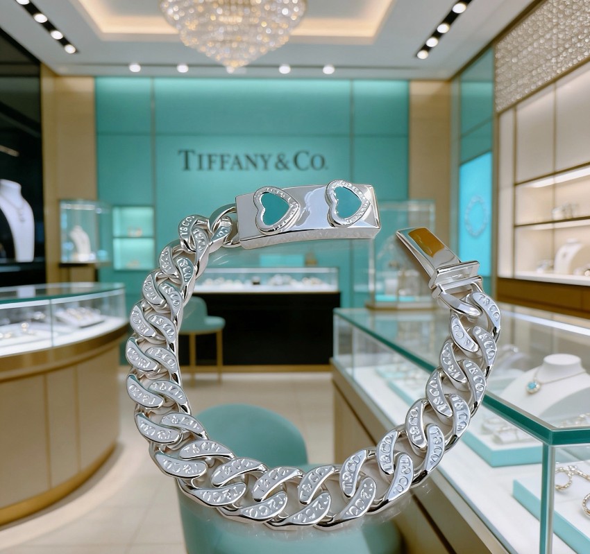ティファニーの象徴的なエレガンスを表現した本物級コピーのチェーンブレスレットは、存在感のあるチェーンとダブルハートモチーフが魅力のアイテムです。中央のプレートにあしらわれたハートデザインは、繊細な装飾と絶妙なカラーリングで手元に華やかさをプラスします。滑らかなシルバー仕上げとしっかりとした作りにより、高級感と耐久性を両立。細部まで丁寧に仕上げられた高再現度のディテールがリアルな質感を演出します。カジュアルからフォーマルまで幅広いスタイルに合わせやすく、長く愛用できる一品です。