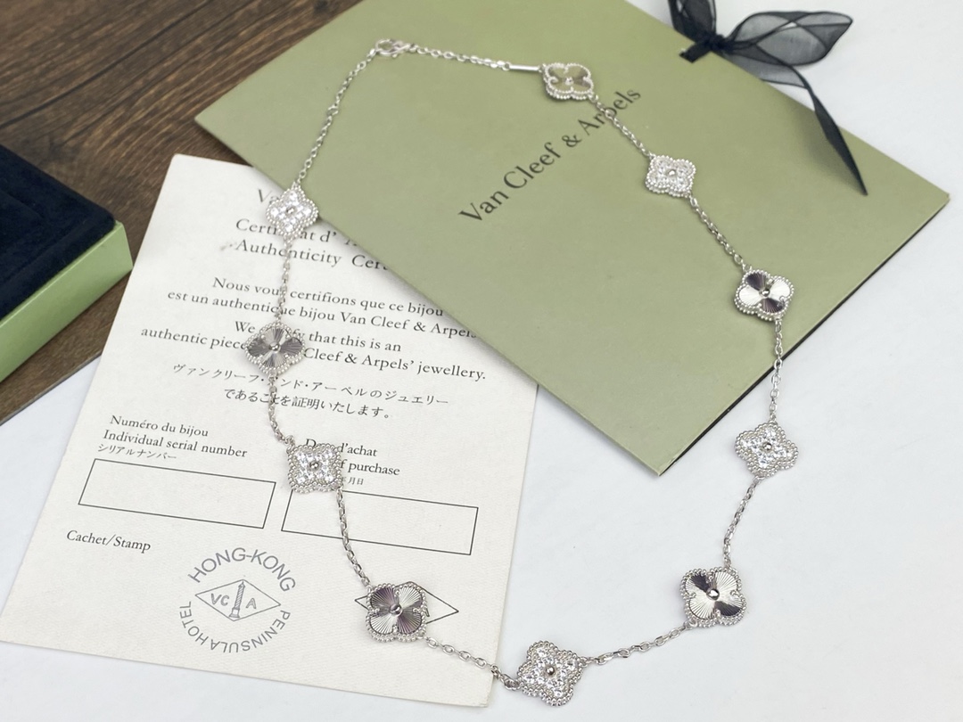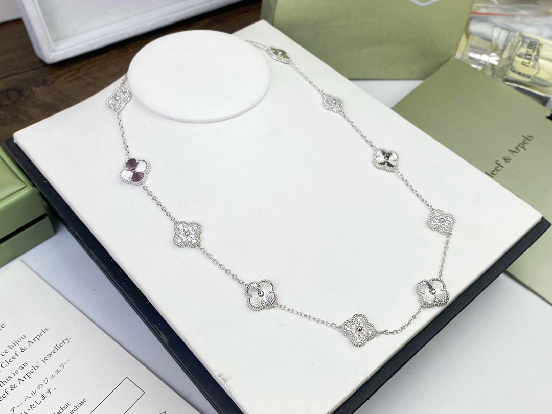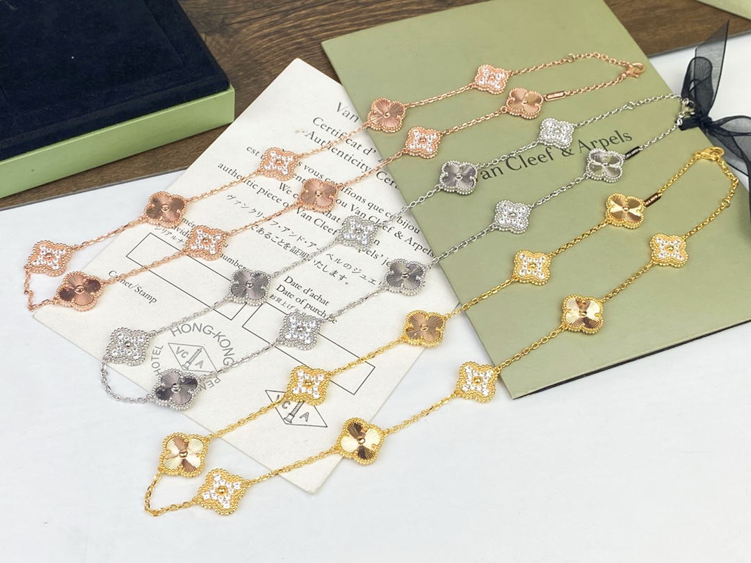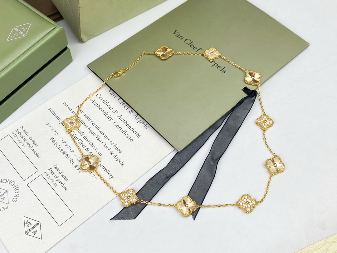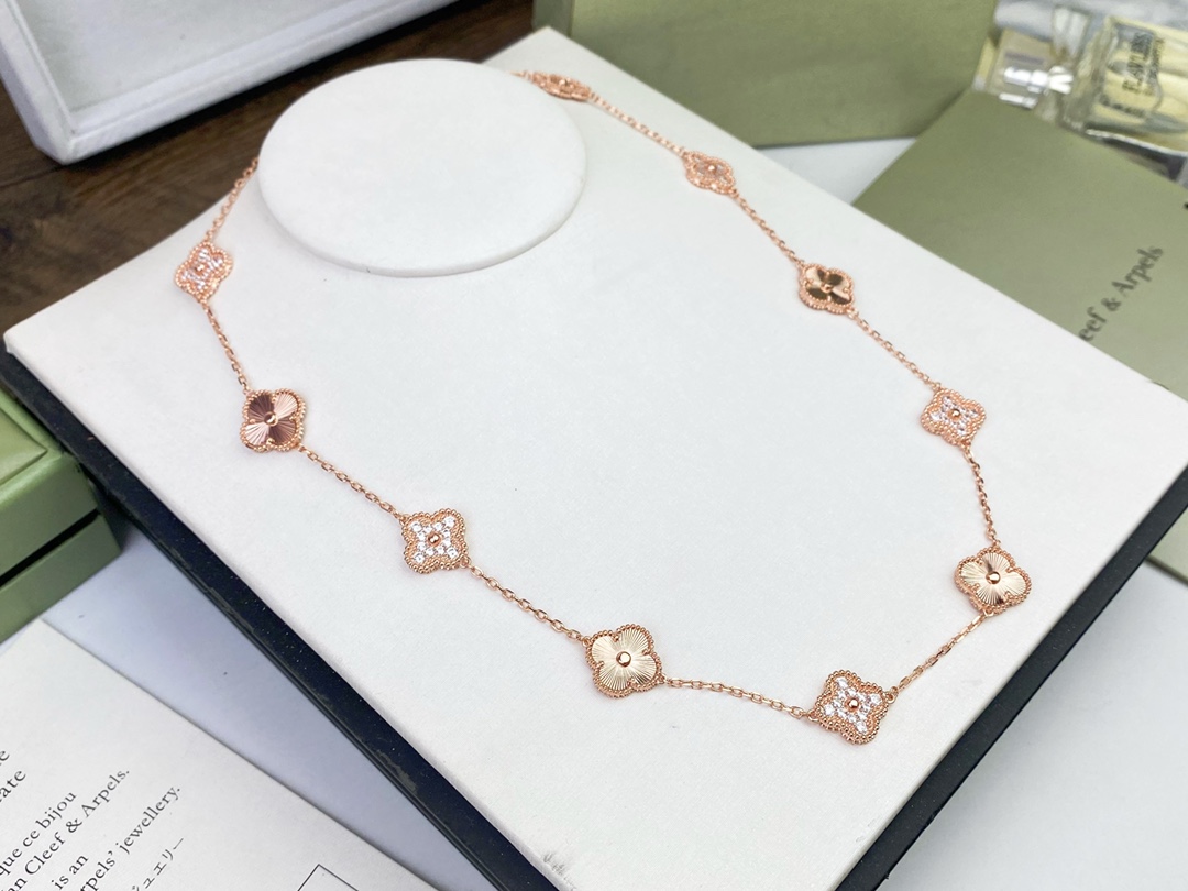 ヴァンクリーフ&アーペル(Van Cleef & Arpels)のアイコニックなアルハンブラデザインを丁寧に再現した2025年新作ネックレスは、コピーとは思えないほどの完成度を誇ります。繊細なディテールと洗練されたデザインが特徴で、ゴールド・シルバー・ローズの3色展開により多彩なコーディネートを楽しめます。高級感漂う存在感と精密な仕上げは、本格派ジュエリーとしての価値を感じさせ、フォーマルからカジュアルまで幅広く対応。数量限定入荷で、秘密厳守の安全配送と確実な発送保証付き。贈り物や特別な日のアクセントとしても最適な逸品です。