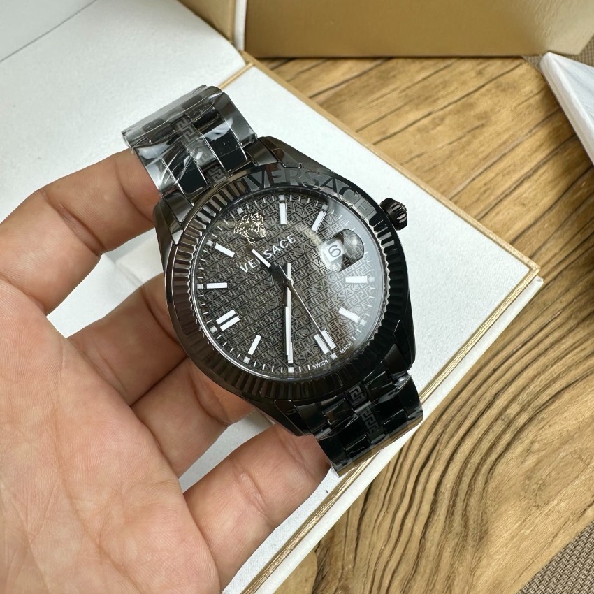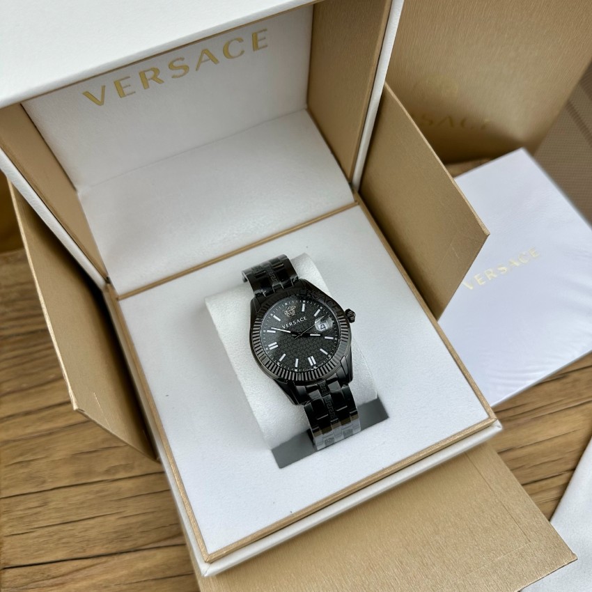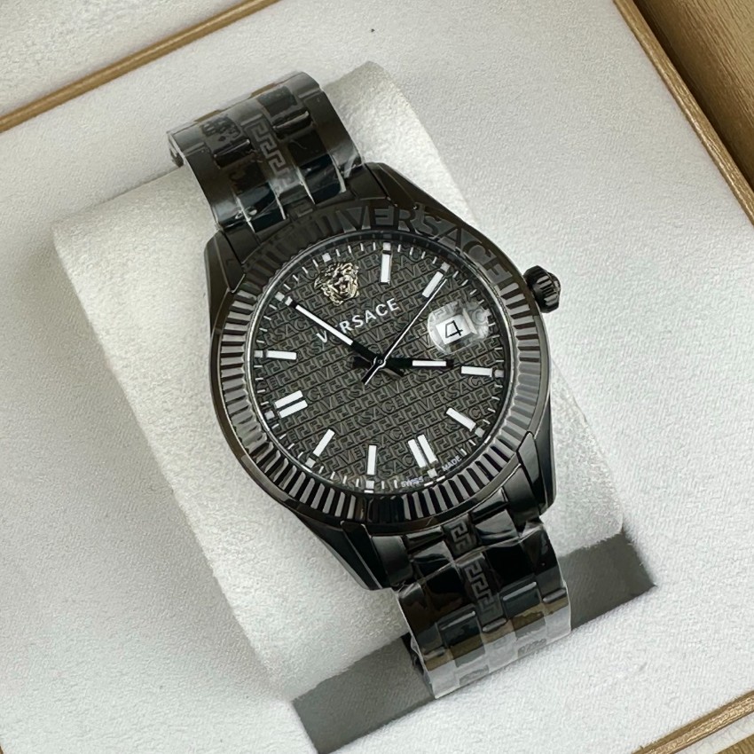 高再現度で仕上げた本モデルは、細部のクオリティにこだわった一着です。ヴェルサーチの象徴的なメデューサロゴを文字盤に配し、オールブラックの上質な質感が大人の魅力を引き立てます。格安ながら高級レベル仕様で再現されており、重量感とシャープなフォルムが腕元に存在感をプラス。ミラーフィニッシュの輝きと繊細なパターンデザインが美しく、購入者からは「想像以上の完成度」「高見えして大満足」との声も多数。2025新作として人気急上昇中の、ヴェルサーチらしさ溢れるおすすめモデルです。