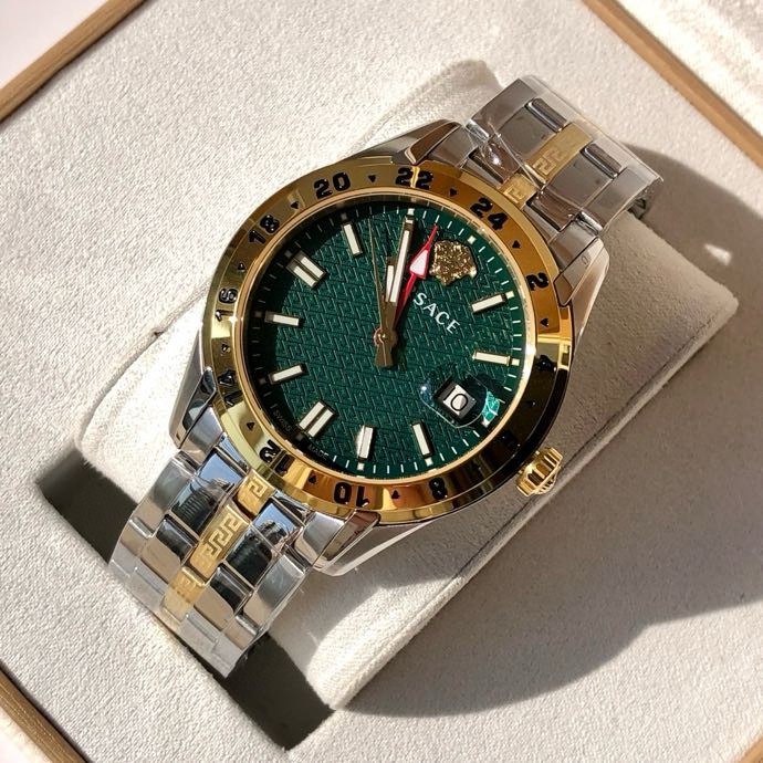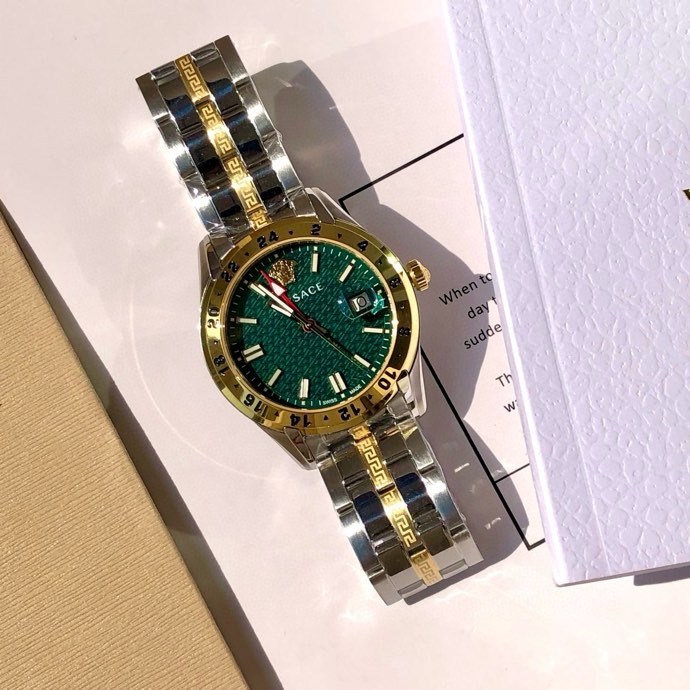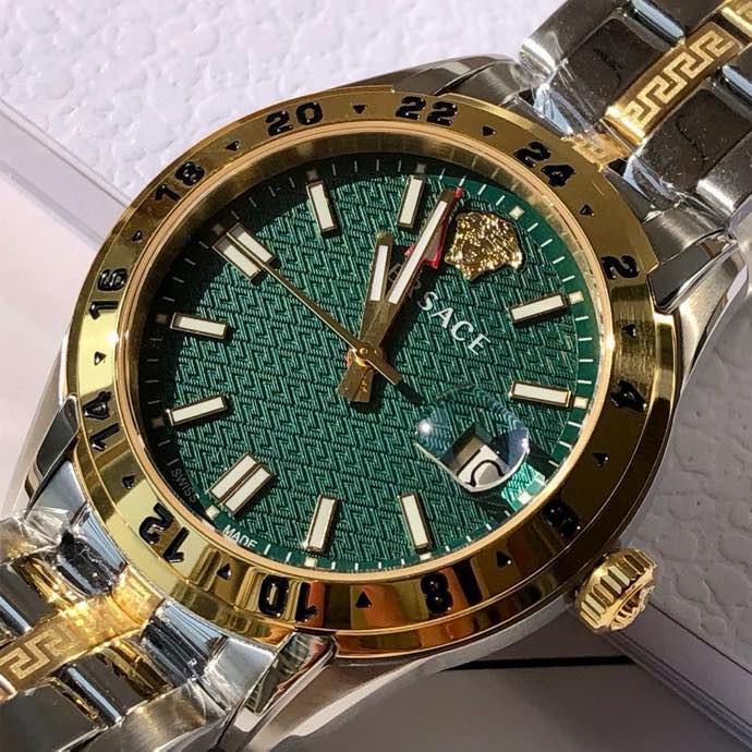 伝統的なブランド要素を取り入れつつ、現代的にアップデートされたモデル。ヴェルサーチの象徴メデューサロゴをあしらったグリーンダイヤルが印象的な2025新作腕時計です。優良サイト限定モデルとして、高級レベル仕様で仕上げられたステンレスブレスとゴールドベゼルが腕元に存在感を与えます。精密ディテールのインデックスと高再現度の仕上げにより、実物さながらのクオリティを実現。購入者からは「質感が非常に高い」「色味が美しく高見えする」と好評。日常使いにも特別な場にも相応しい、ヴェルサーチの新たな定番モデルです。