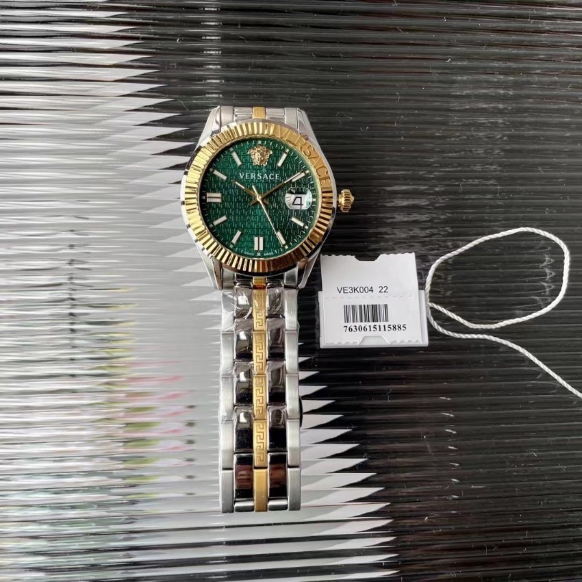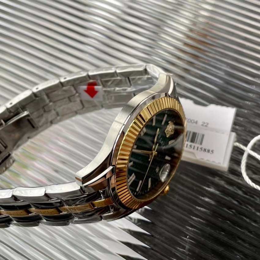 高再現度で仕上げた本モデルは、細部のクオリティにこだわった一着です。ヴェルサーチの象徴であるメデューサロゴを立体的に配置し、グリーンダイヤルとゴールドベゼルが織りなす高級感が際立つデザイン。ブランド コピー 安全通販限定として、高級レベル仕様と精密ディテールを追求した仕上がりが特徴です。ステンレスブレスの輝きと重量感のバランスも絶妙で、手元を華やかに演出。購入者からは「質感が本物と見分けがつかない」「実際に手に取ると高級感が段違い」と高評価。ビジネスにも普段使いにも最適な、2025年注目のヴェルサーチ腕時計です。