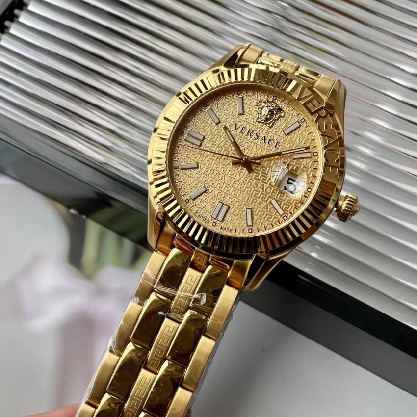 高再現度で仕上げた本モデルは、細部のクオリティにこだわった一着です。ヴェルサーチらしいギリシャ模様とメデューサロゴを精密に再現し、オールゴールドのボディが放つ輝きは圧巻。偽物 バレない再現度を実現した高級感仕上げで、見る者を魅了します。重量感のあるステンレスブレスは手首にしっかりと馴染み、装着感も快適。購入者からは「高級時計と遜色ない完成度」「細部まで丁寧な作り」と高評価。2025年の新作として注目を集めるヴェルサーチの人気モデルで、特別なシーンにもぴったりの逸品です。