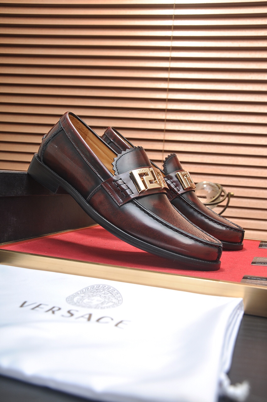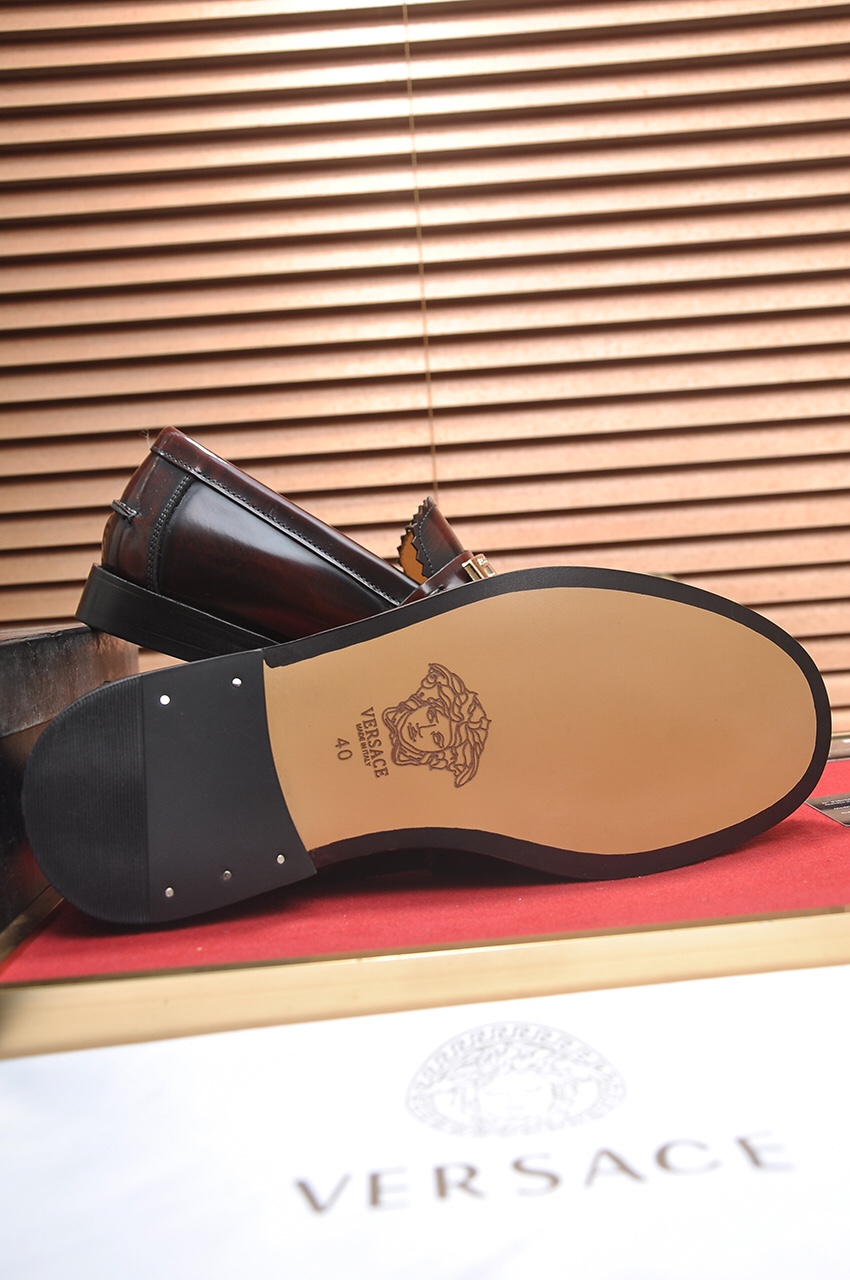 ヴェルサーチ(Versace)のスーパーコピー 優良サイト限定モデル。重厚感あるブラウンレザーにゴールドメタルロゴをあしらった高級感仕上げのローファーです。本革使用による柔らかく上質な履き心地と、丁寧な縫製が際立つ一足。フォーマルにもカジュアルにも映える洗練されたデザインで、足元にラグジュアリーな存在感を演出。スーパーコピー 優良サイトが誇る最高クラスの完成度です。