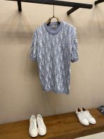 ディオール ブランド コピー ロゴ総柄ニットトップス 半袖デザイン 通気