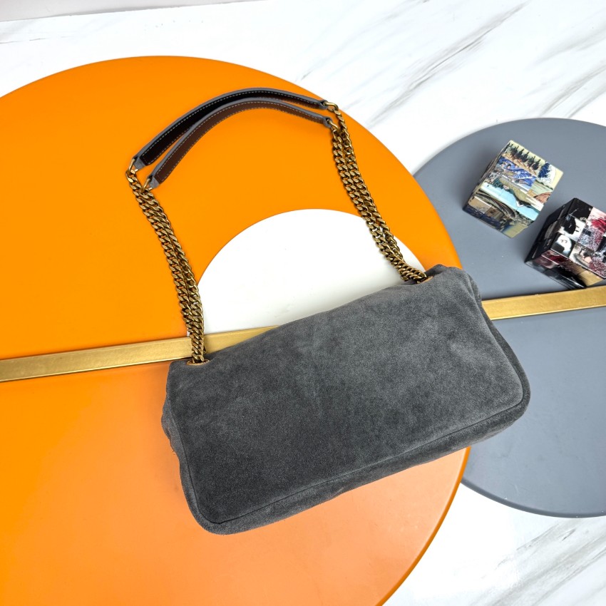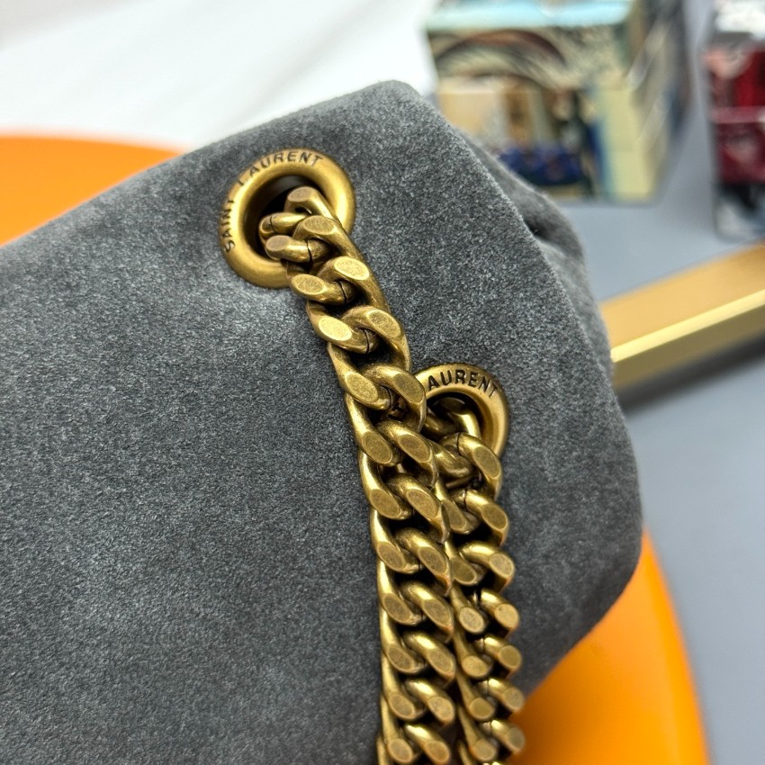 丁寧な縫製と柔らかな素材感が魅力で、リピーターからの評価も高いです。チャコールグレーのスエードはしっとりとした深みと高級感があり、アンティーク調ゴールドのYSLロゴ金具との相性も抜群。「コピーとは信じられないほど自然なスエード質感」といった声も寄せられるほど、細部まで忠実に再現された精密ディテールが際立っています。肩掛け・斜め掛けの両方に対応するチェーンデザインは機能面でも優秀で、2025新作として注目度も高いモデルです。発送保証や追跡可能な配送で購入後の安心感も万全。品質管理徹底の一品として、自信を持っておすすめできます。