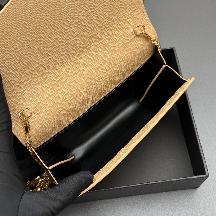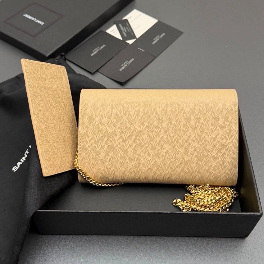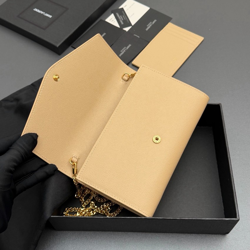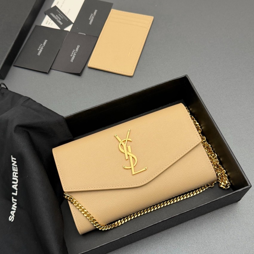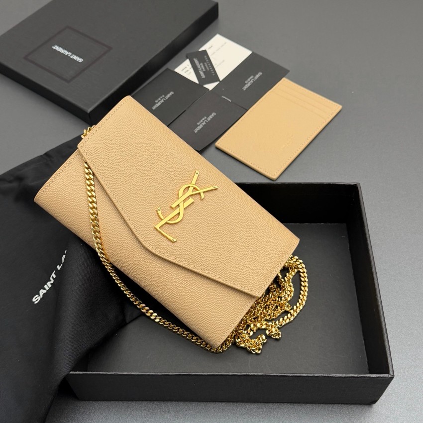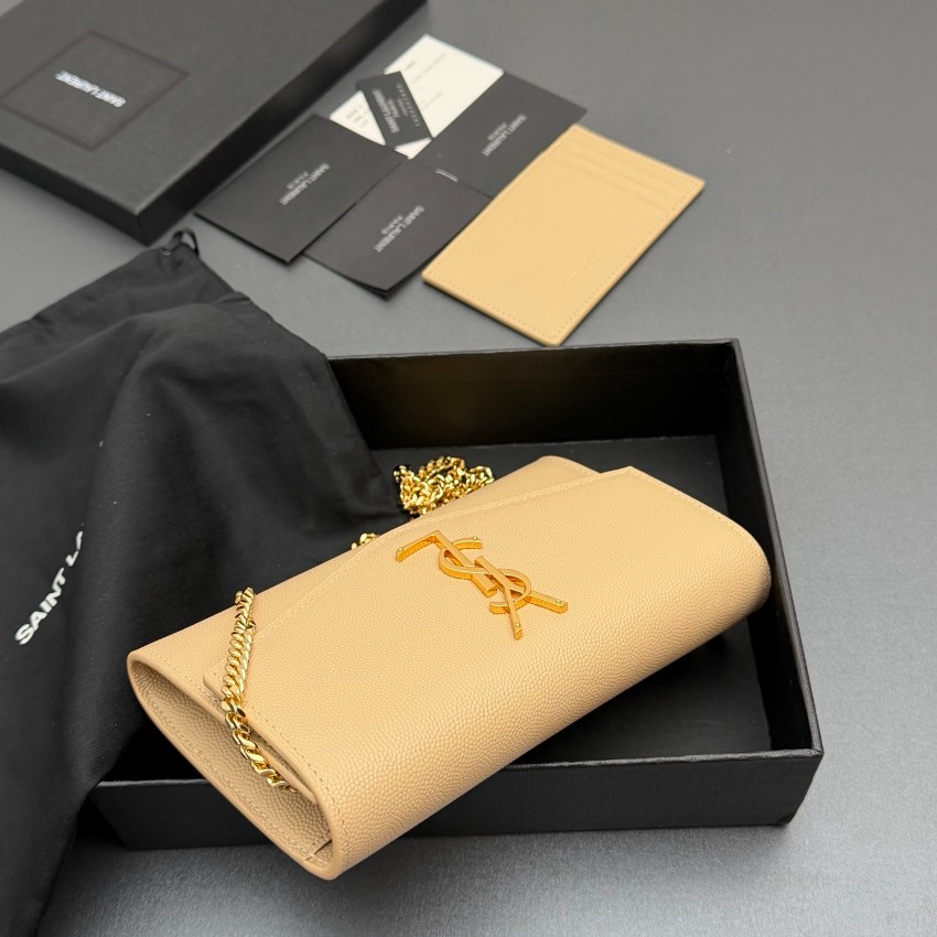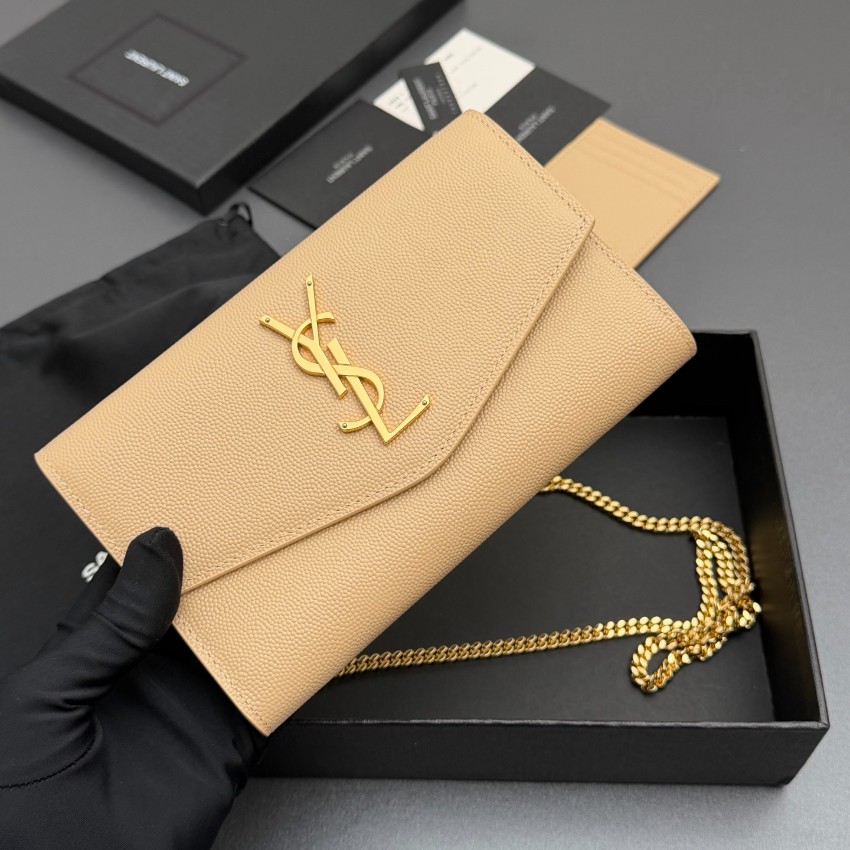 サンローランのエレガントな魅力を体現したハイブランド仕様のチェーンウォレットは、シンプルながらも洗練されたフラップデザインと存在感あるYSLロゴが特徴です。柔らかな質感の上質レザーを使用し、手に馴染む快適な使い心地を実現。内側はカードや紙幣をすっきり収納できる設計で、機能性にも優れています。取り外し可能なチェーンストラップにより、ショルダーやクラッチとしても使用可能。細部まで丁寧に仕上げられた高級感仕上げが、日常のコーディネートに上品なアクセントを加えます。