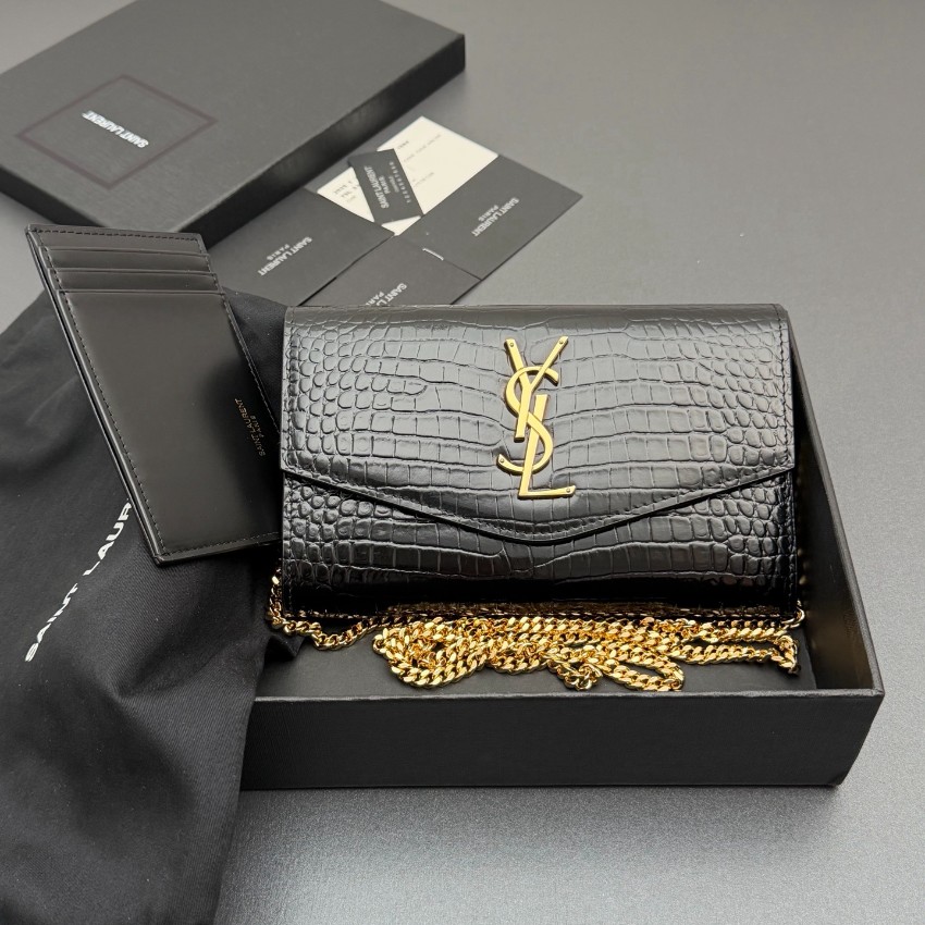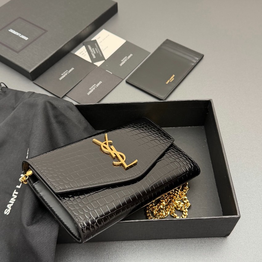 サンローランの象徴的なスタイルを忠実に再現した本物級コピーのチェーンウォレットは、クロコ型押しレザーの美しい質感と存在感あるYSLロゴが魅力のモデルです。細部まで丁寧に仕上げられた高級感仕上げにより、リアルな質感と洗練された印象を実現。内側はカードや紙幣を整理しやすい設計で、実用性にも優れています。ゴールドチェーンがアクセントとなり、ショルダーやクラッチとして使える2WAY仕様。カジュアルからフォーマルまで幅広く対応し、コーディネートに上品なアクセントを加える一品です。