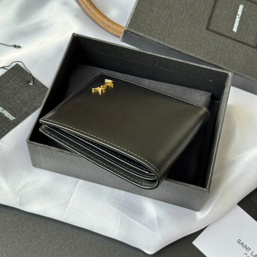 サンローラン 格安モデルとして展開される本ウォレットは、シンプルで無駄のないデザインとゴールドロゴが印象的な一品。スムースレザーの滑らかな手触りと自然な光沢が高級感を演出します。内部はカードポケットや札入れを効率よく配置し、コンパクトながら収納力にも優れています。エッジ部分は丁寧に仕上げられており、長く使用しても型崩れしにくい設計。軽量で持ち運びやすく、ビジネスからカジュアルまで幅広いシーンで活躍する実用性の高いモデルです。