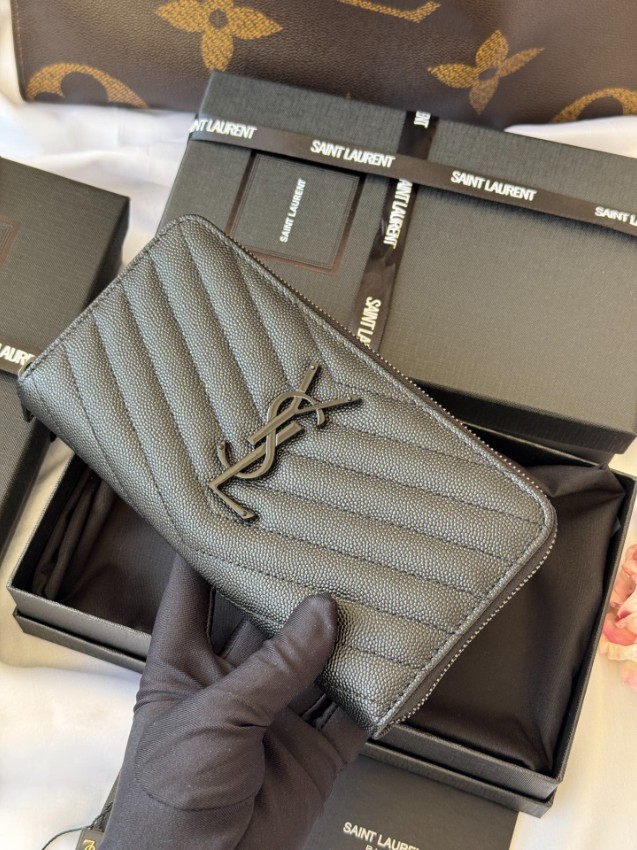 サンローラン ハイブランド仕様として仕上げられた本長財布は、ブランドを象徴するV字キルティングとブラックトーンロゴが印象的なデザイン。落ち着いた光沢を持つレザー素材が高級感仕上げを引き立て、上品で洗練された印象を与えます。ラウンドファスナー構造により中身をしっかり保護しつつ、開閉もスムーズ。内部にはカードポケットや札入れ、小銭入れをバランスよく配置し、大容量ながら整理しやすい設計です。デザイン性と機能性を兼ね備えた、日常使いに最適な一品です。