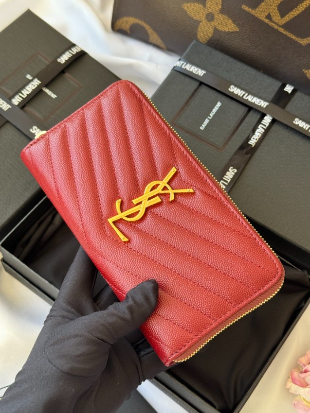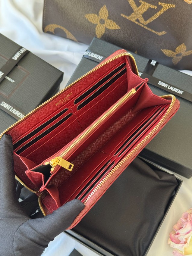 サンローランの魅力を凝縮したハイブランド長財布は、立体感あるキルティングデザインと中央に配置されたゴールドロゴが特徴です。しなやかなレザー調素材を採用し、手に馴染む滑らかな触り心地を実現。ラウンドファスナー仕様で開閉がスムーズなうえ、カードポケットや紙幣スペースが充実しており整理整頓しやすい設計です。高評価を得ている人気モデルとして、シンプルながら存在感のあるデザインは様々なスタイルに合わせやすく、日常から特別なシーンまで幅広く活躍します。